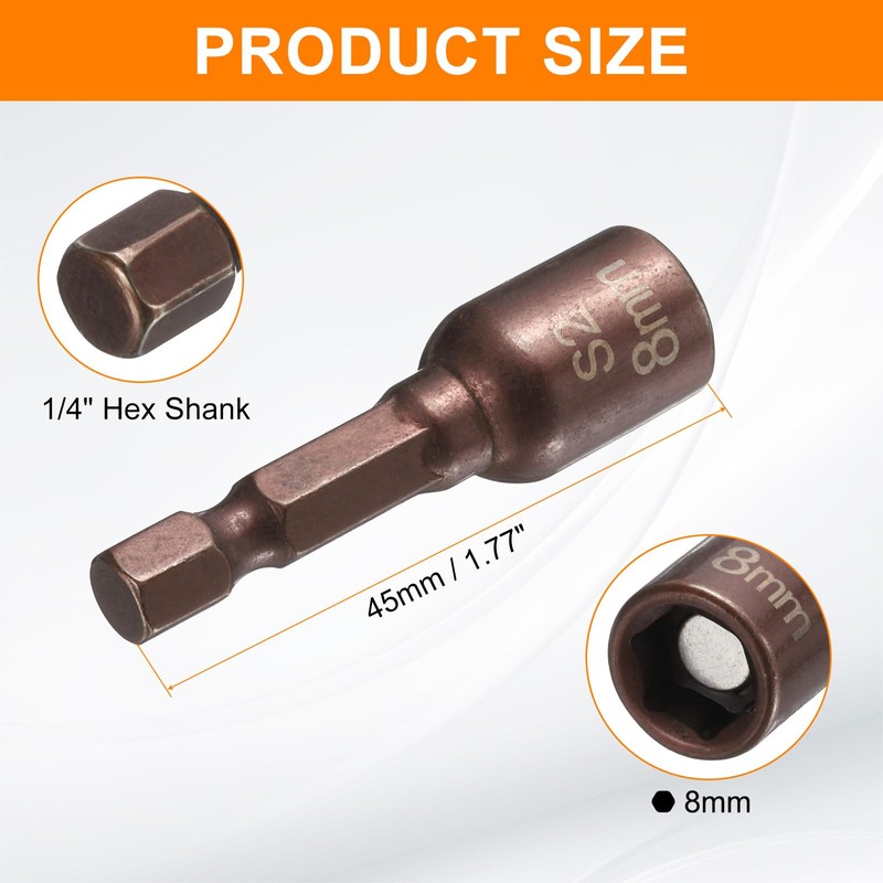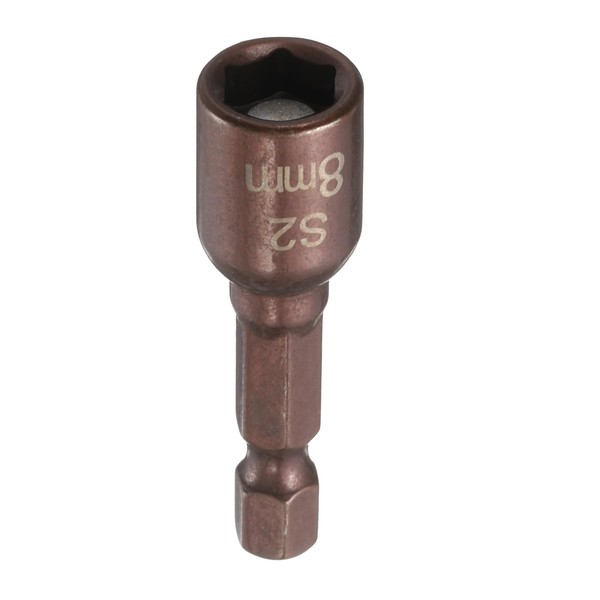 sourcing map Magnetic Nut Driver 8mm Hex Drive Socket S2 Tool Steel Power Screw Drill Bits Socket Wrench Tools with 1/4" Quick Change Hex Shank for Power Drills Impact Drivers, Brown