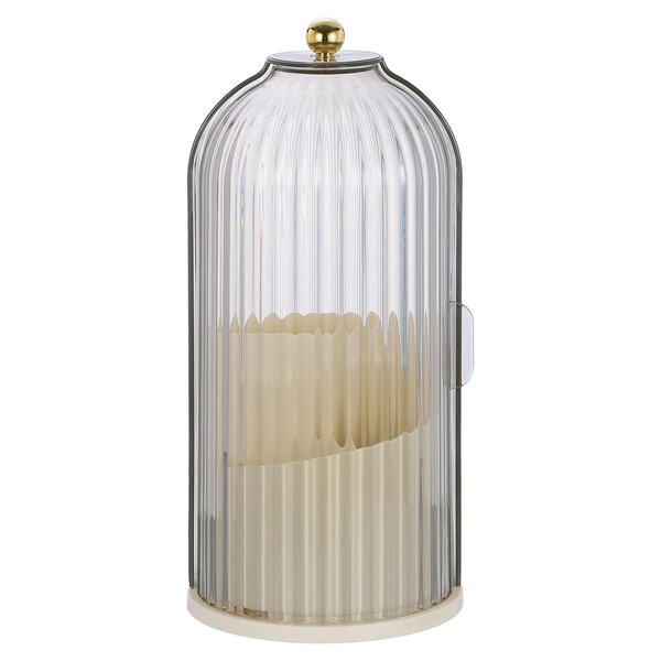sourcing map Makeup Brush Holder with Black Clear Lid, 360 Rotating Makeup Brushes Organizer, Dustproof Cosmetic Storage Case for Vanity Desktop Bathroom, Cream