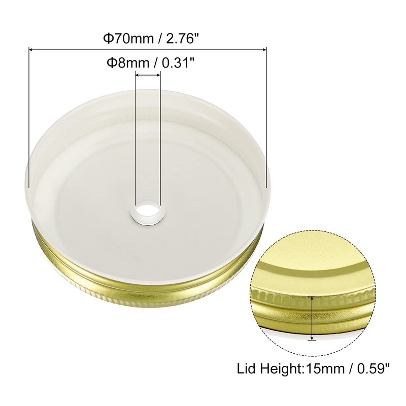 Compact Size - Designed to fit regular mouth(70mm/2.76") mason jars and with an 8mm straw hole, therefore, a straw less than 8mm is suitable for these lids. A useful design for you to drink coffee, tea, juice, soda, etc more convenient.