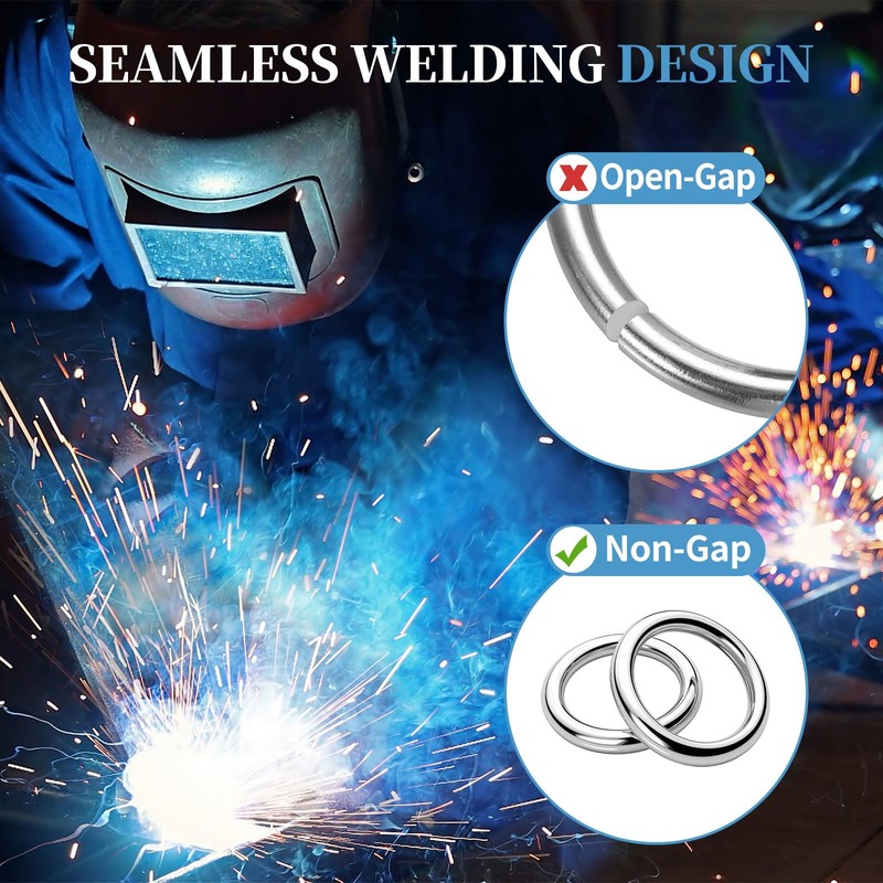 • Elevate your projects with 304 stainless steel O-rings designed to last! Seamless welding eliminates weak points, while the mirror-like finish resists tarnish and maintains its lustrous shine over time. Their ultra-smooth surface protects straps, fabrics, and cords from abrasion, making them perfect for repeated use. Whether for functional strength or sleek aesthetics, these rings deliver rugged reliability without compromising style.