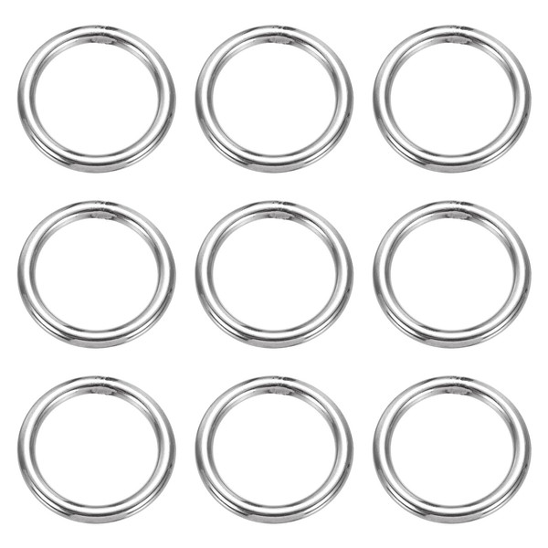 sourcing map Metal O Rings, 0.2" Thick 1.97" OD 304 Stainless Steel Seamless Welding O-Ring Solid Heavy Round Ring Buckle for Macrame Hanging Slings Rope, 9pcs
