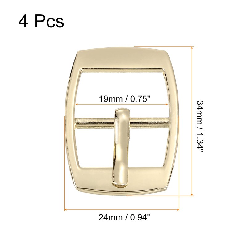 • [Center Bar Buckles] - Total Size: 34mm x 24mm/1.34" x 0.94"(L*W); Fit Belt Width: 19mm/0.75"; Color: Gold; Package Included: 4Pcs x Metal Roller Buckles.