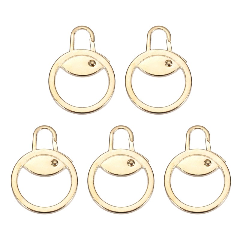sourcing map Metal Zipper Pull Charm 5 Pcs Detachable Round Zipper Pull Replacement Slider Extender Repair Kits for Coats Jackets Pants Luggage Suitcase Purse Fasteners, Gold Tone