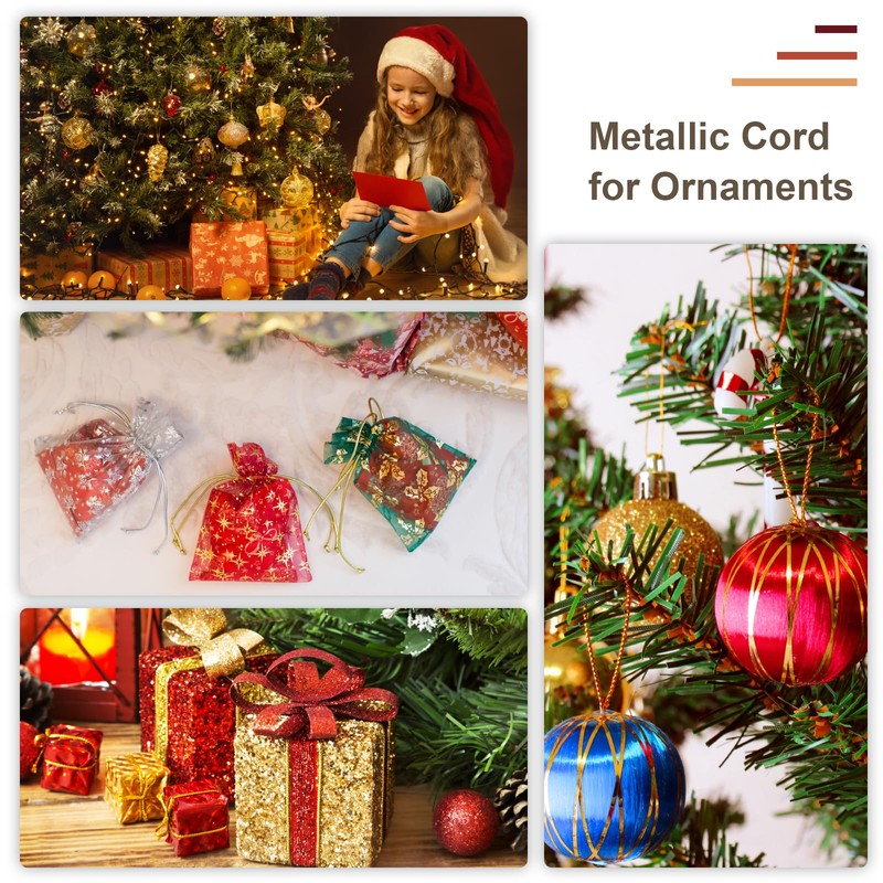 - Metallic stretchy cords can be widely used in different ways, such as tying gift tags, hanging Christmas tree decorations, wrapping gifts and candies, and are also suitable for hang tags, invitations, braid hair ropes, DIY crafts, various craft beading, jewelry making, or various holiday gift DIY decorations. Elastic string for crafts is a great choice for decorations on many occasions, such as Christmas, New Year, Valentine's Day, Mother's Day, Halloween, Easter, Independence Day, birthdays, pa