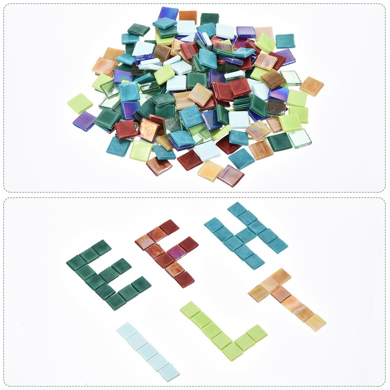 - Material: mosaic tiles are made of sturdy glass material, colorful for filling in and adding interest to a handicraft mosaic project; You can stick them to make the crafts products you want. Feature: the surface is smooth, won't hurt your hands, has a uniform thickness; The color of these mosaics will never lose.