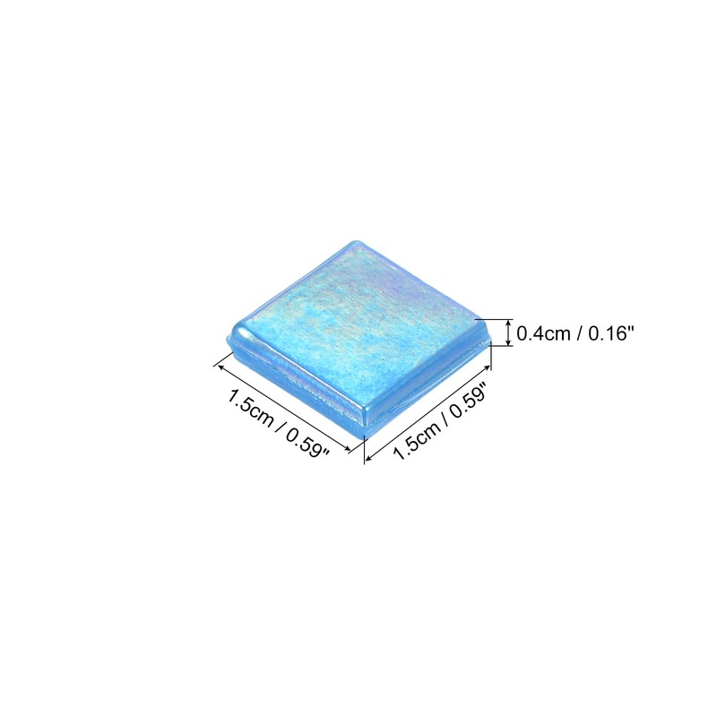 - Color: Bright Blue; Material: Glass; Finish Type: Polished; Installation Type: Glue Down(Not Included Here!); Square Mosaic Size : 1.5 x 1.5 x 0.4 cm/ 0.59 x 0.59 x 0.16 inch(L*W*H); In the package of: 500g x Mosaic Tiles