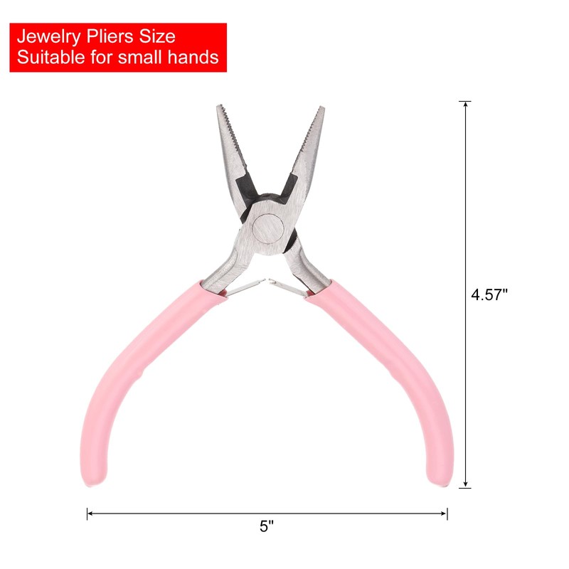 sourcing map Needle Nose Pliers 5" Mini Jewelry Pliers with Cutter & Serrated Thin Precision Jewelry for Beading Tool Hobby Craft, Pink