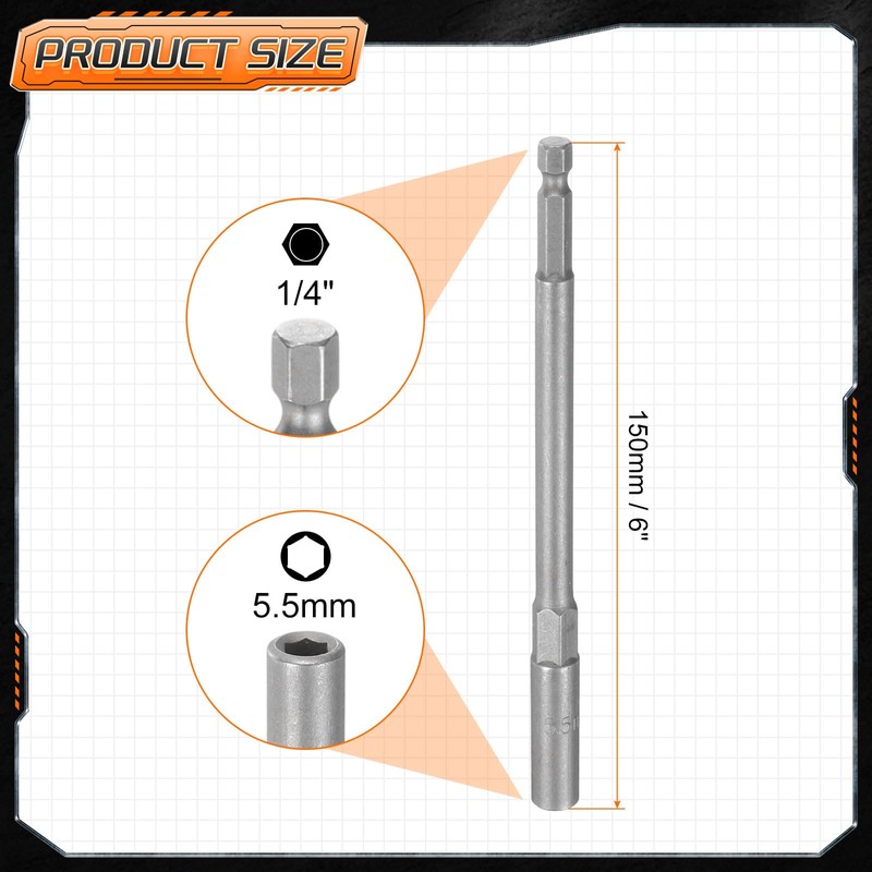 • Size - 5.5mm metric 6-point socket; 1/4" (6.35mm) quick-change hex shank, 150mm / 6" total length. Nut driver drill bit with an extended length design enhances reach in tight spaces, allowing for precise and easy handling of various applications.