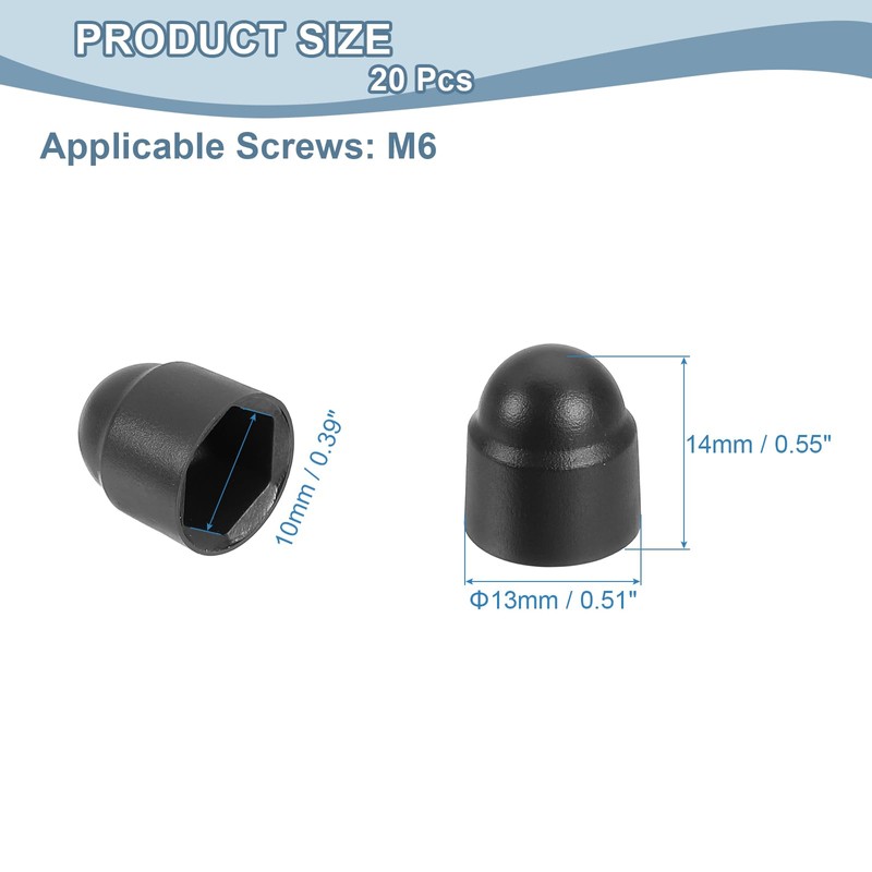 sourcing map Nut Protection Cap, 20Pcs M6x10x14mm - Plastic Hexagonal Screw Protection Cap, Dome Acorn Hex Head Bolt Covers, Waterproof Decorative Cap (Black)