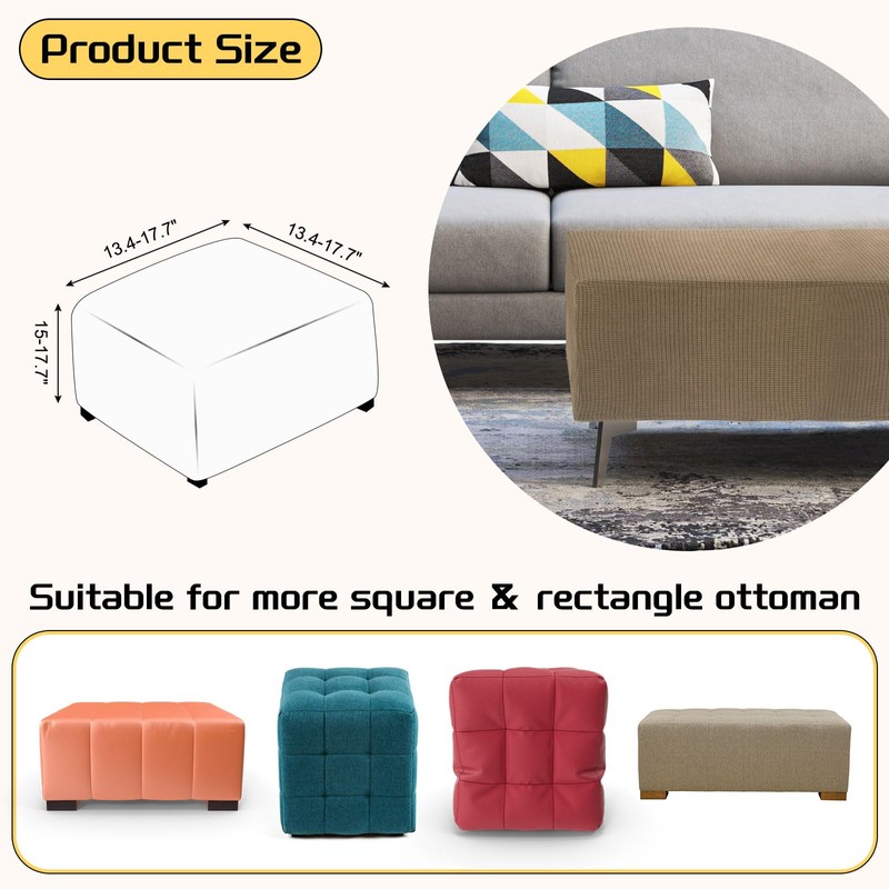 - Product Size: Our ottoman cover is suitable for most ottomans. The size fit for the ottoman length is between 13.4"-17.7"; Width: 13.4"-17.7", Height: 15"-17.7". Please measure your ottoman before purchase.