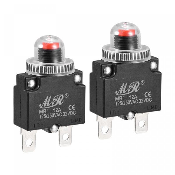 sourcing map Overload Protection 12A AC125/250V DC32V Push Button Switch for Air Compressor Pack of 2