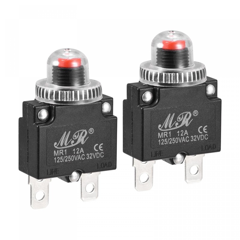 - Overload protection, is available in the size of: 12A current, AC125/250V DC32V, 2 pin, 47 mm x 28 mm x 13 mm/1.85 inches x 1.1 inches x 0.51 inches (L x W x H) overall size