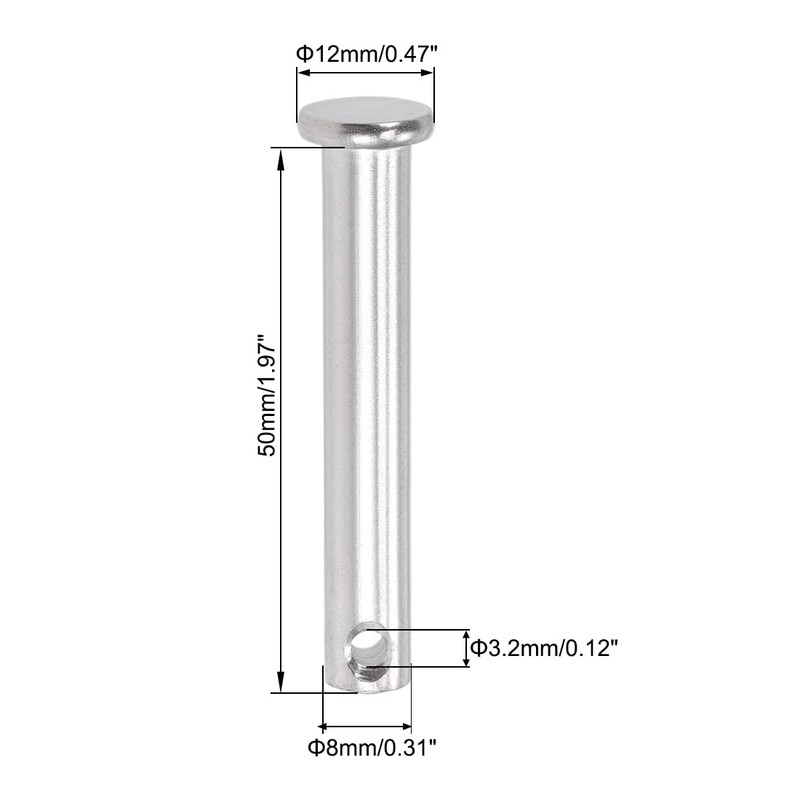 sourcing map Pack of 10 Single Hole Flat Head Clevis Pins Joint Pin 8 mm x 50 mm Stainless Steel 304