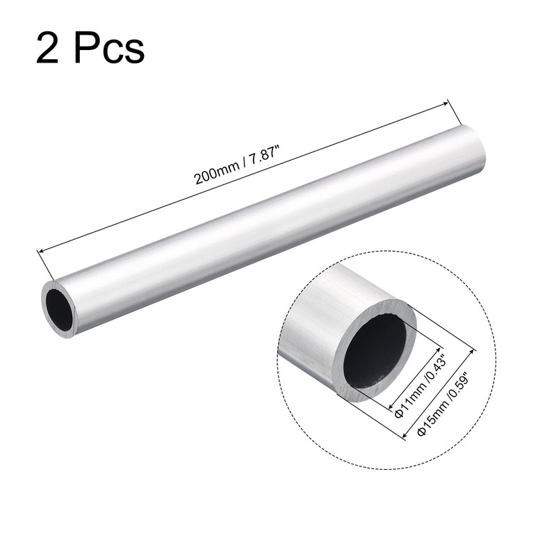 sourcing map Pack of 2 6063 Aluminium Tube, 11 mm Inner Diameter, 15 mm Outer Diameter, Aluminium Profile, Metal Tube, 200 mm Length, Aluminium Round Tube for Industrial Construction, Craft Projects