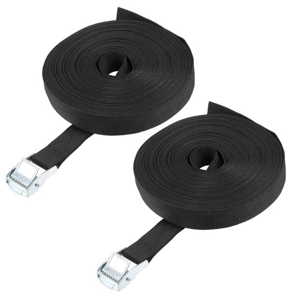 sourcing map Pack of 2 Lashing Straps with Cam Buckle 12 m x 25 mm 80 kg Load Cap Polypropylene for Transport Cargo Black