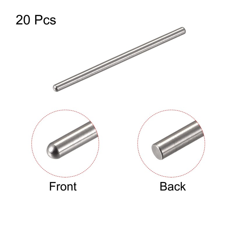 - Dowel Pins Diameter: 1mm/0.04"; Length of Dowel Pins: 15mm/0.59"; Package Includes:20pcs x Dowel Pins