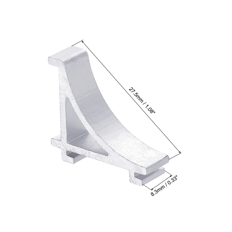 - Total size: 27.5x8.3x24.5mm/1.08x0.33x0.96"(L*W*H) mounting hole spacing: 19.5mm/0.77"; slot width: 1.3mm/0.05"; hook width: 7.5mm/0.3"; material: aluminium; colour: silver; package contents: 6 freezer shelf brackets kit.