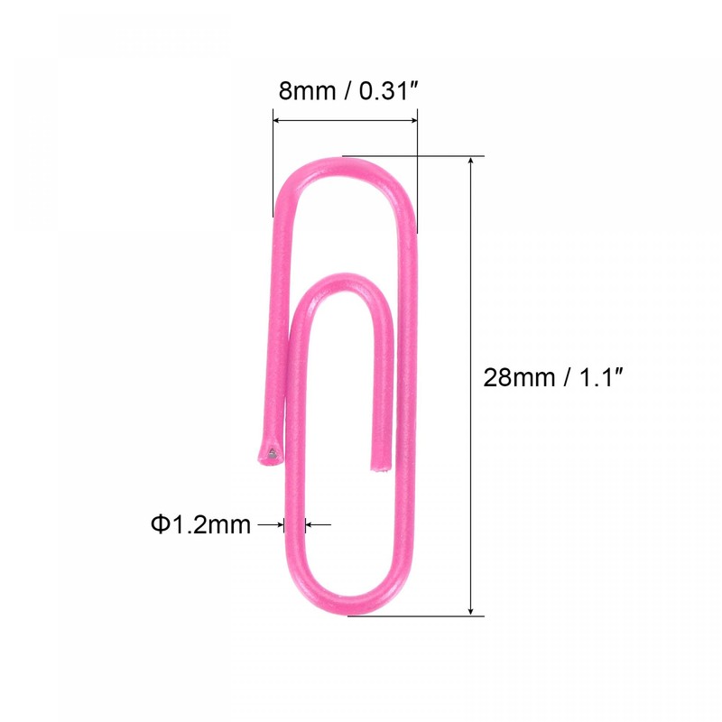 • Size Type: Small; Fastener Capacity: about 8 pages; Overall Size: 28 x 8 mm / 1.1 x 0.31 inch(L*W); Wire Diameter: 1.2mm; Whether Coated: Yes, Vinyl Coated; Color: Pink; In the package of: 200 x Paper Clips.