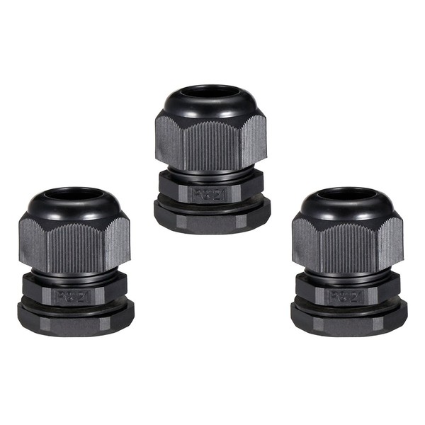 sourcing map PG21 Cable Gland Waterproof Plastic Joint Adjustable Locknut Black for 13mm-18mm Dia Cable Wire 3Pcs
