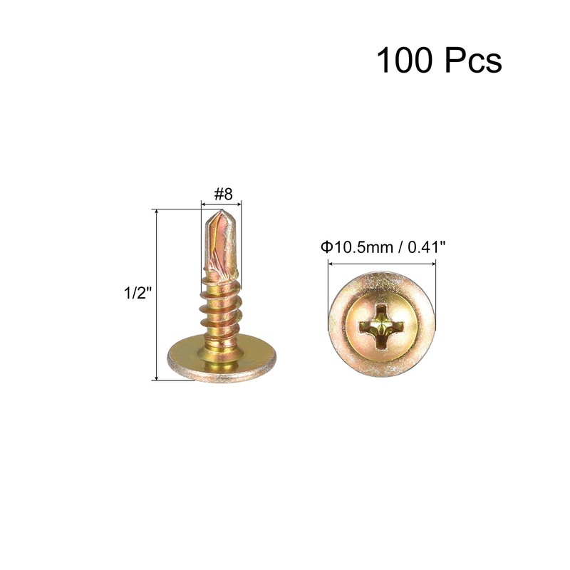 sourcing map Phillips Head Self Tapping Screws, #8 x 1/2" Carbon Steel Self Drilling Sheet Metal Screw Gold Tone 100pcs