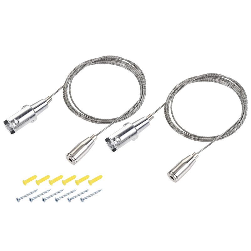 sourcing map Picture Hanging Wire Kit, 2Set 1.5M Adjustable Hanger Wire System for Home Art Gallery Picture Display Kit, Load 33lbs, with 6Set Screws