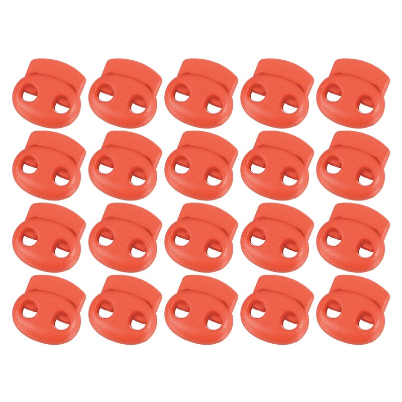 sourcing map Plastic Spring Cord Locks, 20Pcs Shoe Lace Tie Lock, Double-hole Slider Toggles Clip End Stopper Fastener for Drawstrings Paracord (Orange)