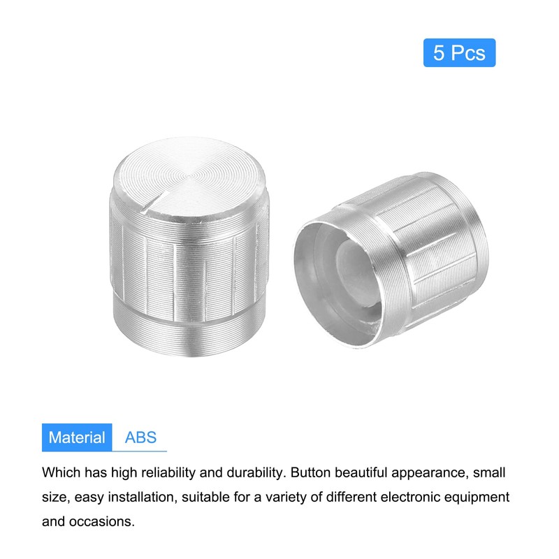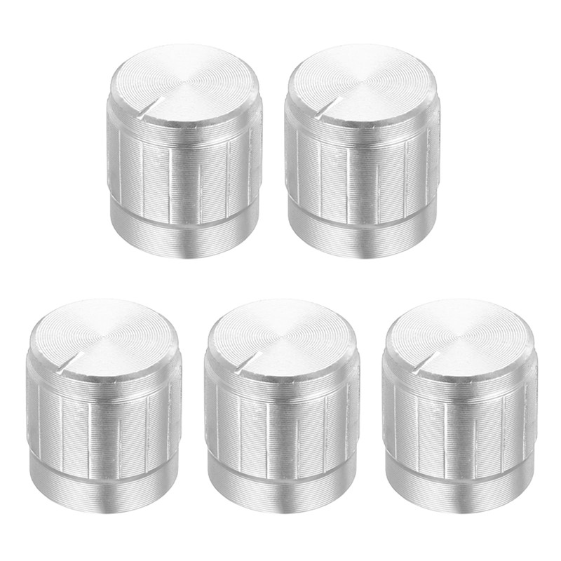 sourcing map Potentiometer Control Knob 6mm D Type Shaft Electric Guitar Power Amplifiers Stereos, Bass 180 Degrees 6x17x17mm Aluminum Plastic Knobs Silver 5PCS