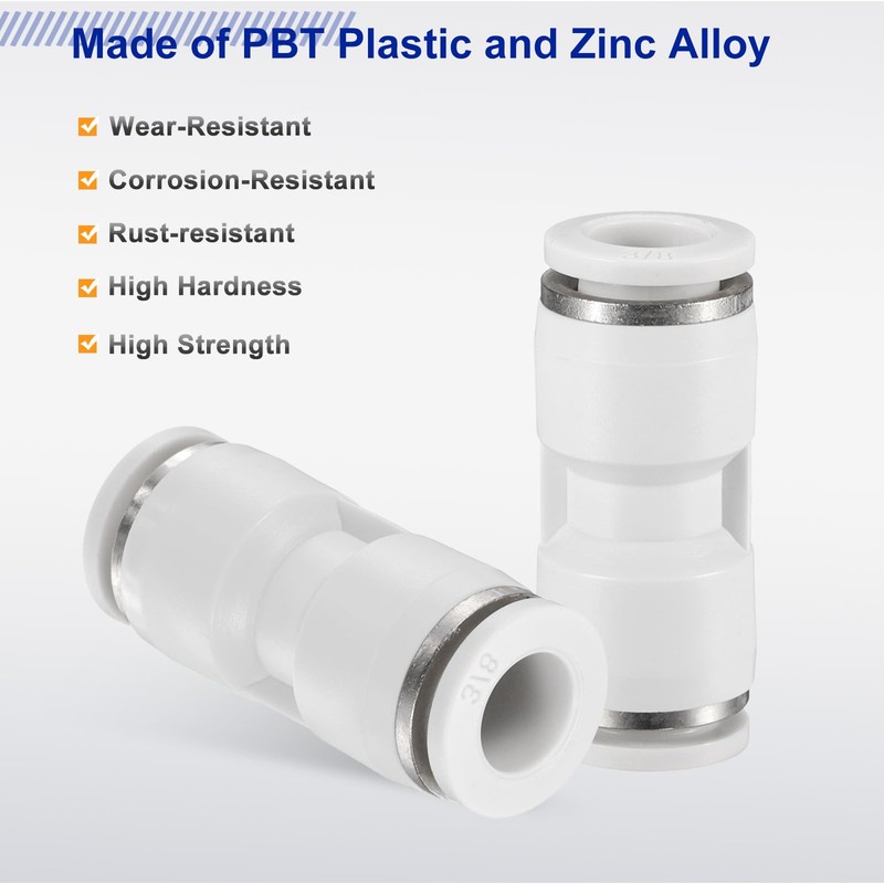 - Material - Our air pipe connector kit is made of PBT plastic and zinc alloy, which is light in weight, has excellent wear resistance and corrosion resistance, can effectively prevent corrosion and rust, and has high hardness and high strength, suitable for high pressure applications.