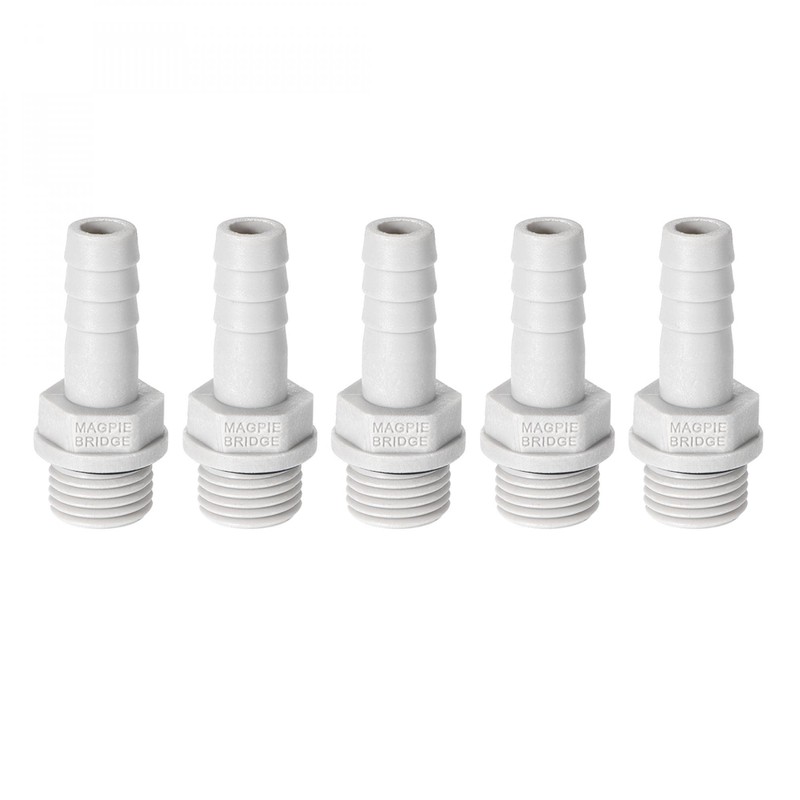 sourcing map PVC Barb Hose Fitting Connector Adapter 8mm or 5/16" Barbed x 1/4" G Male Pipe 5pcs