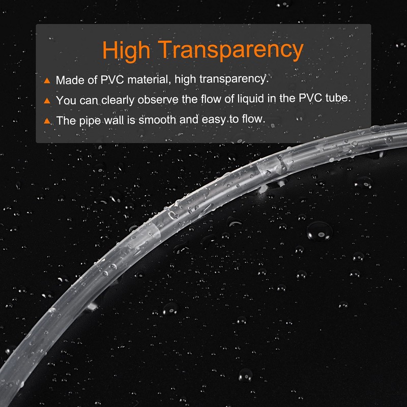 PVC tube, is in size of : 9mm/0.35-inch inner dia, 12mm/0.47-inch outer dia, 3 meters/10ft total length