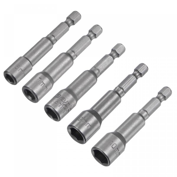 sourcing map Quick Change Nut Driver Bit Set, 1/4 Inch Hex Shank 2.5 Inch Length 6 mm 7 mm 8 mm 9 mm 10 mm Magnetic Nut Setter Drill Bits