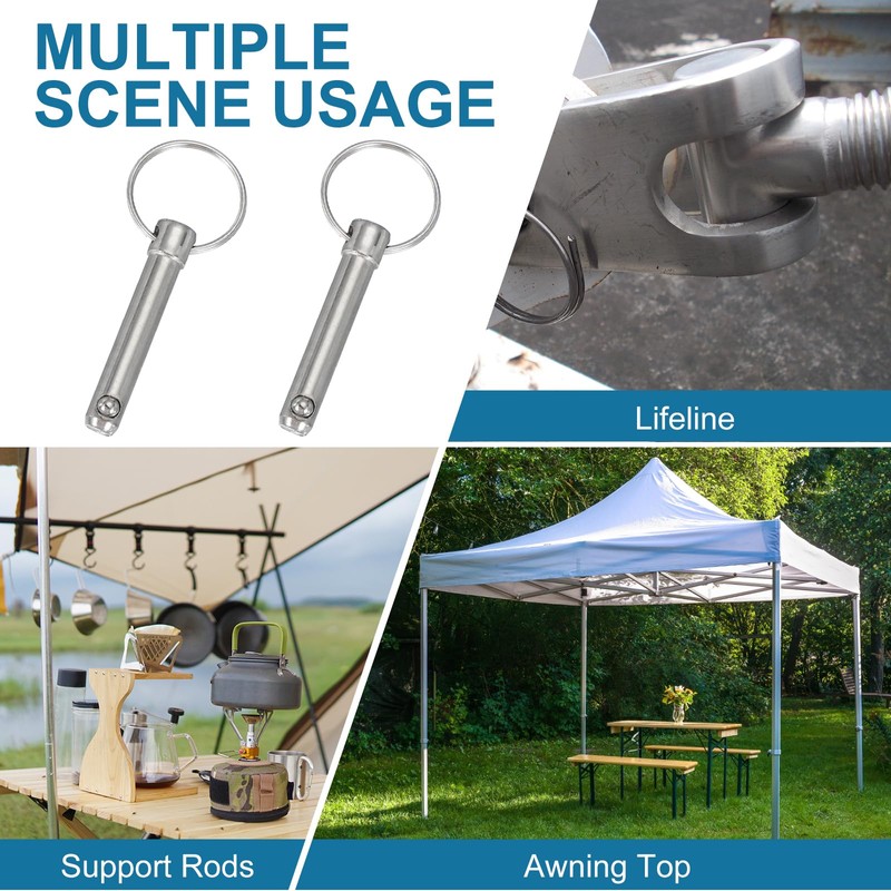 - Quick-release pins are widely used in various shipbuilding, ship outfitting, machinery manufacturing, construction, automobile manufacturing, and aerospace. They can be used as quick-release pins for awning top, boat top, support rods, deck hinges, etc.
