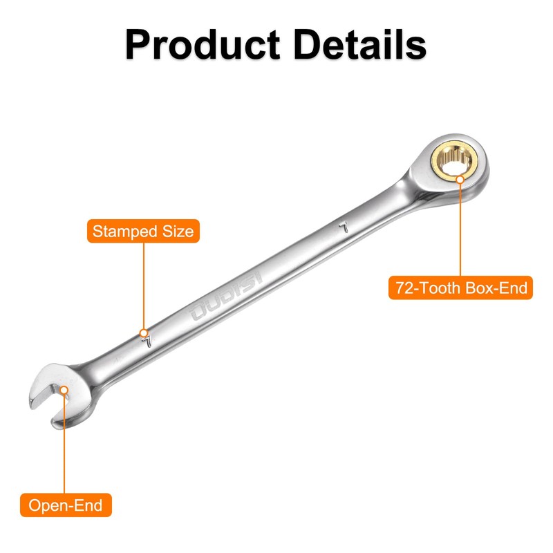 sourcing map Ratcheting Combination Wrench Metric, 7mm, 12 Point 72-Tooth CR-...