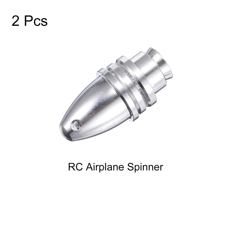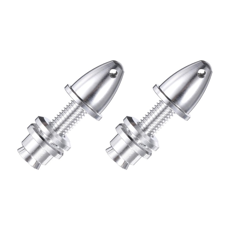 - The RC Airplane Propeller Adapter, Size: 5mm(Aperture); Color: Silver; Material: Aluminum; In the Package: 2 Pack RC Airplane Spinner;(The product is equipped with a 5mm shaft, a 6mm thread outer diameter, and is suitable for a 6mm hole blade.)