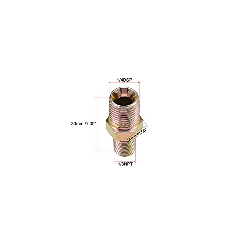 • Thread Size : 1/8NPT to 1/4BSP Male Pipe;Hex Width:14mm/0.55-inch