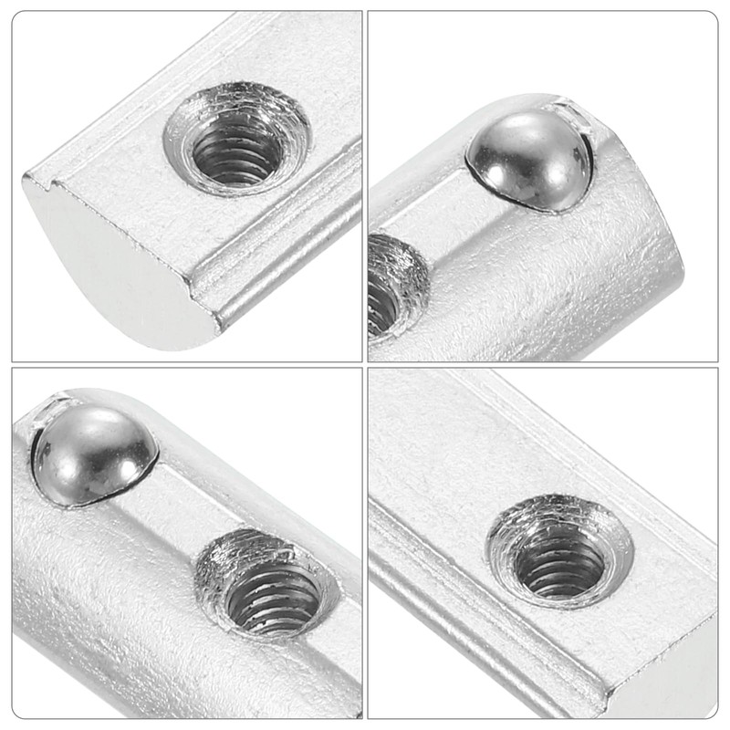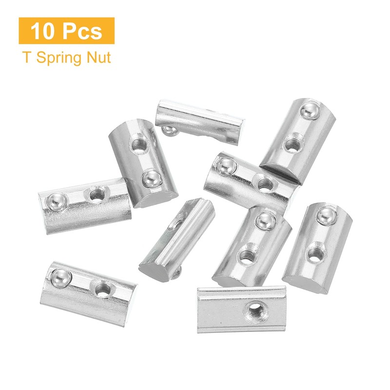 Features: The roll ball elastic t-nuts, have clean thread and can be placed directly into the aluminum slot hole. Compared to slide-in t-nuts, these spring-loaded t-nuts with the built-in ball structure ensure the nut is firmly positioned and not easy to slide when you fix them