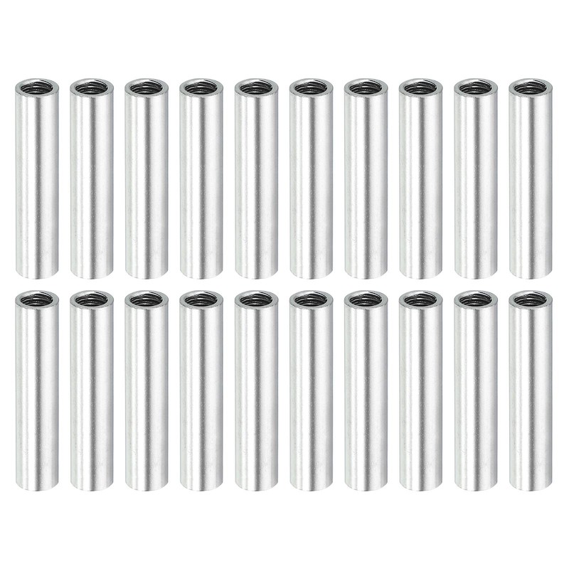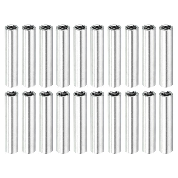 sourcing map Round Coupling Nut M4 x 0.7 mm Internal Thread 25 mm Thread Round Sleeve Connector Rod Bolt Pipe Nut Hardware Fixing Silver Pack of 20