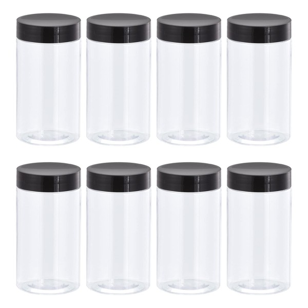 sourcing map Round Plastic Jars with Black Screw Top Lid, 5oz/ 150ml Wide-mouth Clear Empty Containers for Storage, Organizing, 15Pcs