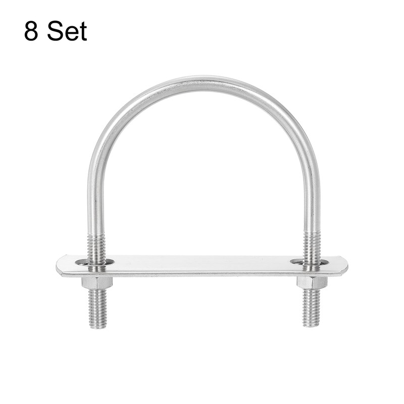 sourcing map Round U-Bolts, 8 Sets 62mm(2.44") Inner Width 80mm Length M6 304 Stainless Steel U Clamp Bolt with Nuts and Plates, for Boat Trailer
