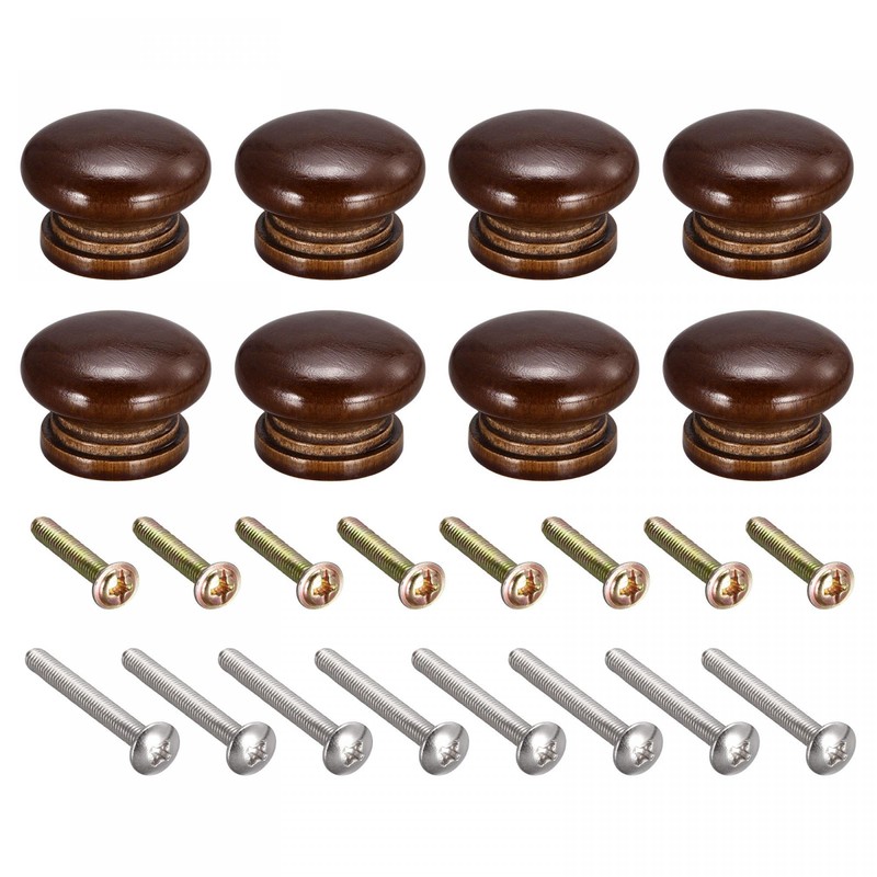 sourcing map Round Wood Knobs, 8pcs 33x23mm Pull Handles for Drawer with Screws Dark Brown