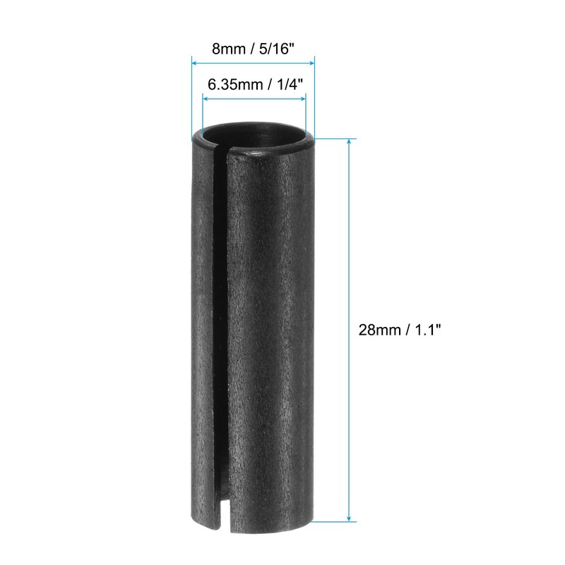 • Outer Diameter (OD): 8mm / 5/16"; Inner Diameter: 6.35mm / 1/4"; Total Length: 28mm / 1.10"; Finish: Rust-proof.
