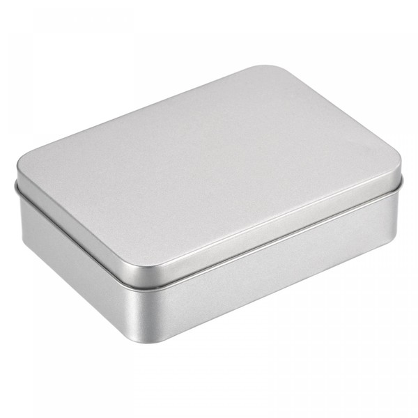 sourcing map Rustproof Metal Tin Container with Lids 4.92 x 3.54 x 1.38 Inches Silver Tone