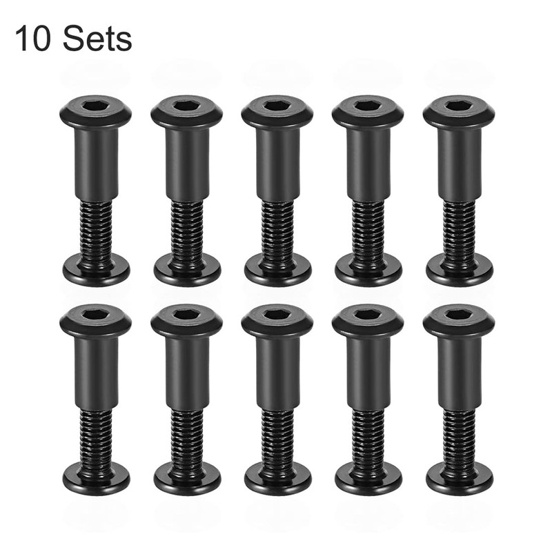 sourcing map Screw Post Fit for 5/16"(8mm) Hole Dia, Male M6x20mm Binding Bolts Leather Fastener Carbon Steel Black 10 Sets