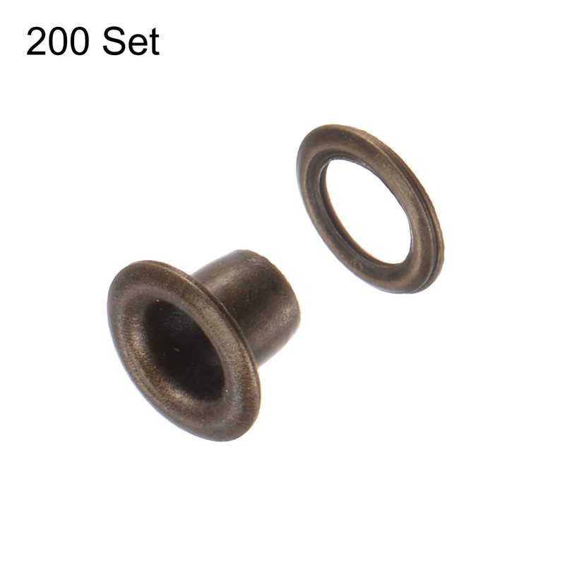 sourcing map Set of 200 Grommets Kit Metal Eyelets 3 mm 0.12 Inch Grommet Tool for Shoes Clothing Belt Bag DIY Project Bronze