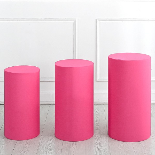 sourcing map Set of 3 Rose Red Cylinder Spandex Stand Covers, Plinth Stand Cover for Party Wedding Birthday Decoration, Only Contains Cylinder Covers (Elastic Fabric - Small)