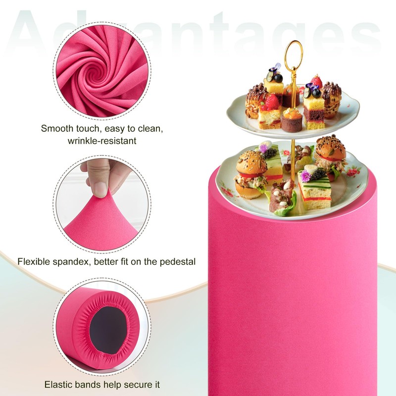 - Easy to Use & Store: Stretchable cylinder base stand covers are perfect for party planners to carry and quickly change for special events. The bottom of the cover has an elasticated band to ensure the cover stays in place and is less likely to fall off. The spandex fabric is easier to clean and fold for storage. It can be reused and stretched to a smooth surface without ironing.