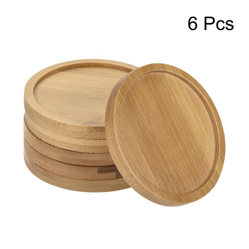 sourcing map Set of 6 Saucers for Flower Pots 8.5 cm Outer Diameter Bamboo Round Flowers Drip Tray for Indoor Use