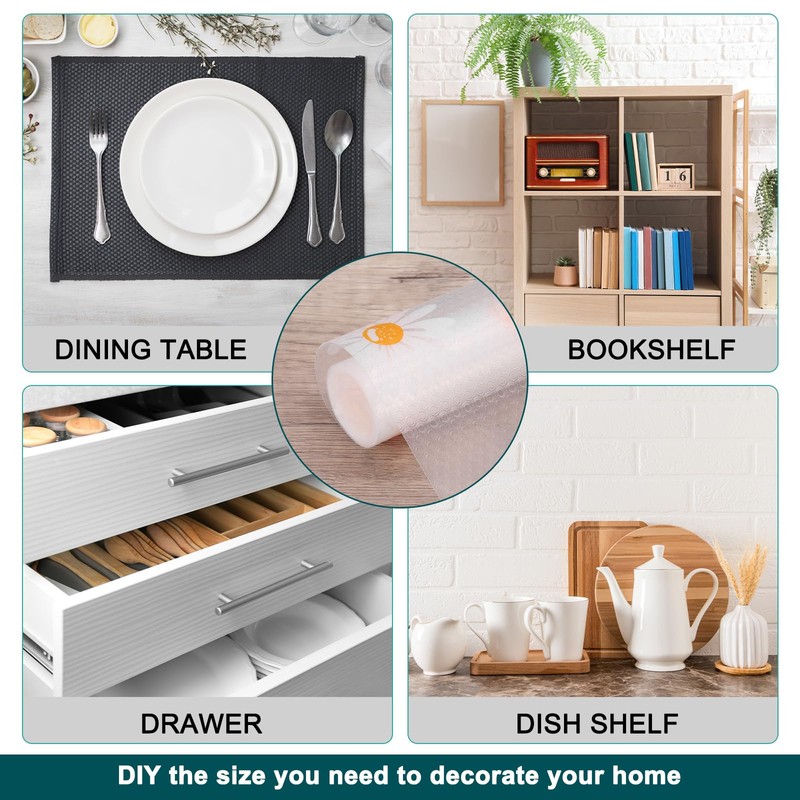 3. Cupboard liner can be applied to various places such as kitchen cabinets shelves drawers office desks dining tables ovens fridges tableware bookshelves dish shelves shoe shelf containers etc.