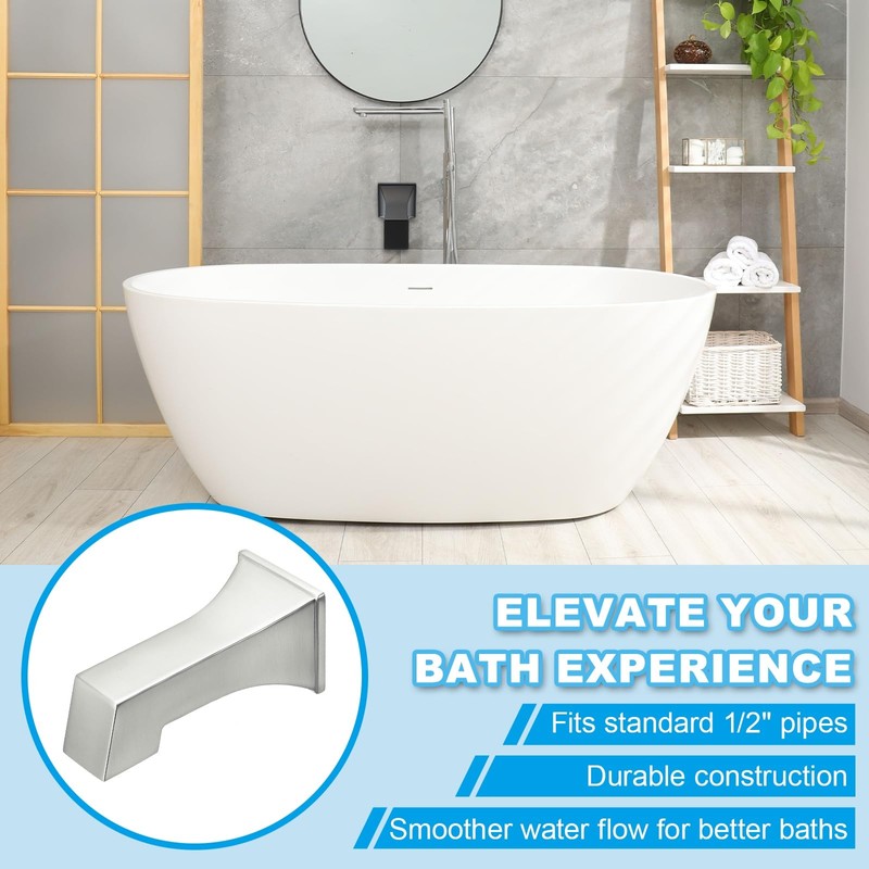 • Slip-on tub spouts offer quick installation without threading, simply sliding onto 1/2" copper pipes and securing with a set screw. Their diverter-free design provides reliable water flow for standalone tubs. Made from durable zinc alloy, these budget-friendly spouts require minimal maintenance. Suitable for straightforward tub faucet replacement projects.