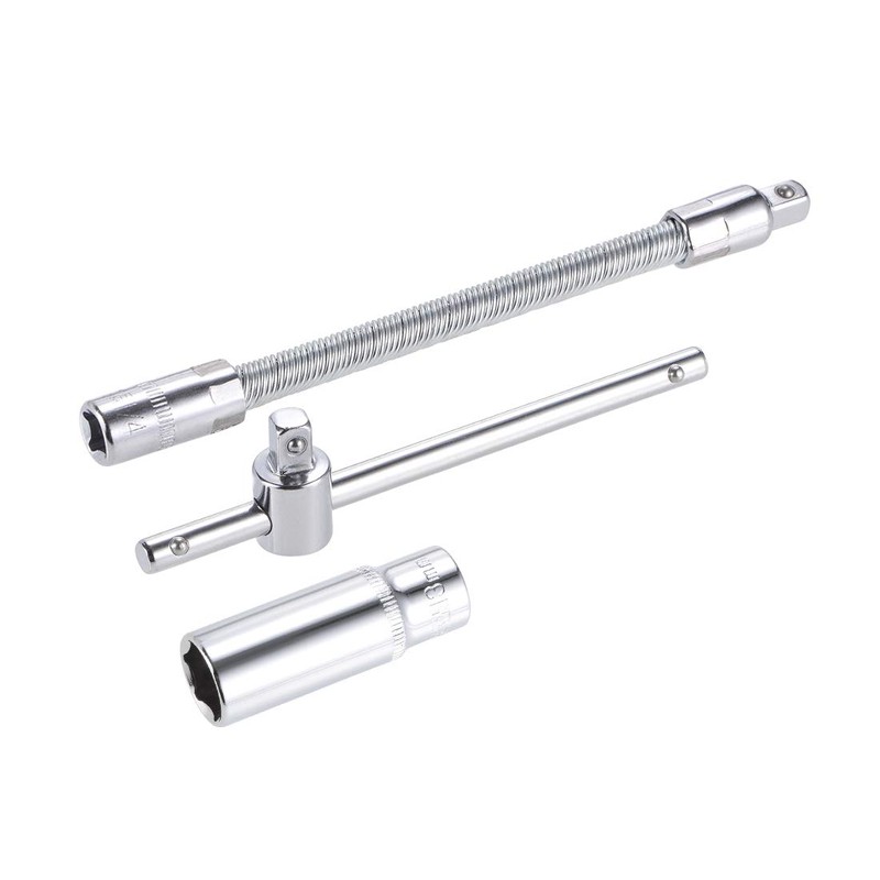 sourcing map Socket Accessory Set of 3 Pcs, 13mm 6-Point Deep Socket 4.5" Sliding Wrench Breaker Bar 6" Flexible Extension Bar with 1/4" Drive